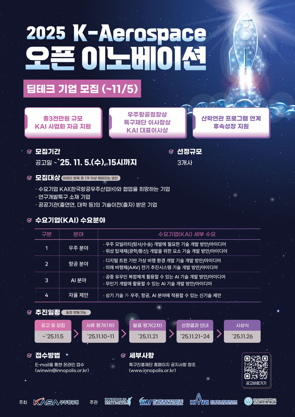 📢 2025 K-Aerospace 오픈 이노베이션 딥테크 기업 모집